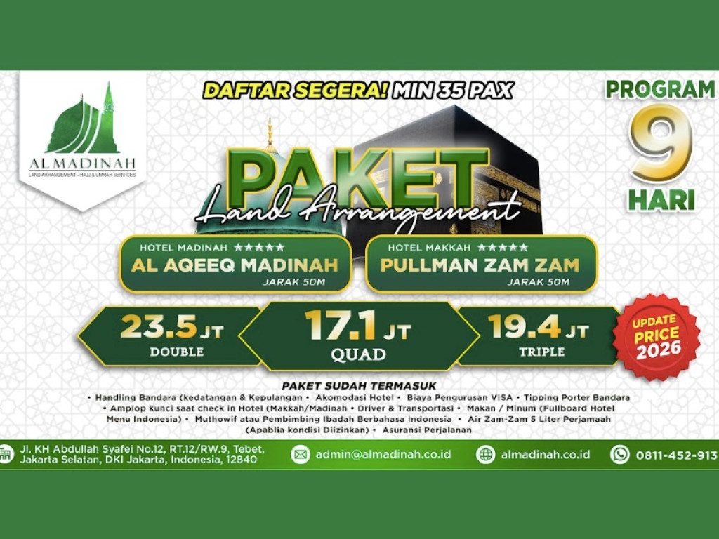 Paket LA Program 9D - AL AQEEQ MADINAH [3N] & PULLMAN ZAM-ZAM [4N]