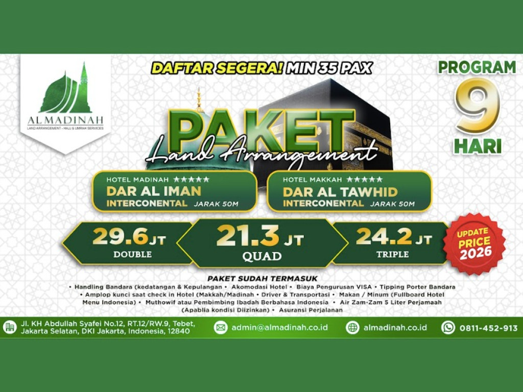 Paket LA Program 9D - DAR AL IMAN [3N] & DAR AL TAWHID [4N] 35 PAX