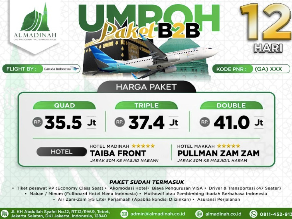 Paket B2B Program 12D - TAIBA FRONT [5N] & PULLMAN ZAMZAM [5N] 35 PAX